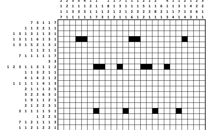 I was new to nonograms, but quickly found out they’re a “paint by numbers” puzzle where hints for rows and columns give you series of segments (of varying lengths) to colour in. Applying all the clues together logically lets you work out whether each cell is filled in or empty progressively until you reach the final solution.